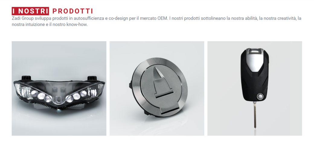 Dal punto di vista produttivo è una azienda molto verticale che all’interno ha anche processi di pressofusione leghe di Zama e Alluminio, stampaggio plastico e trattamenti, costruzione stampi e attrezzature, assemblaggio schede elettroniche.